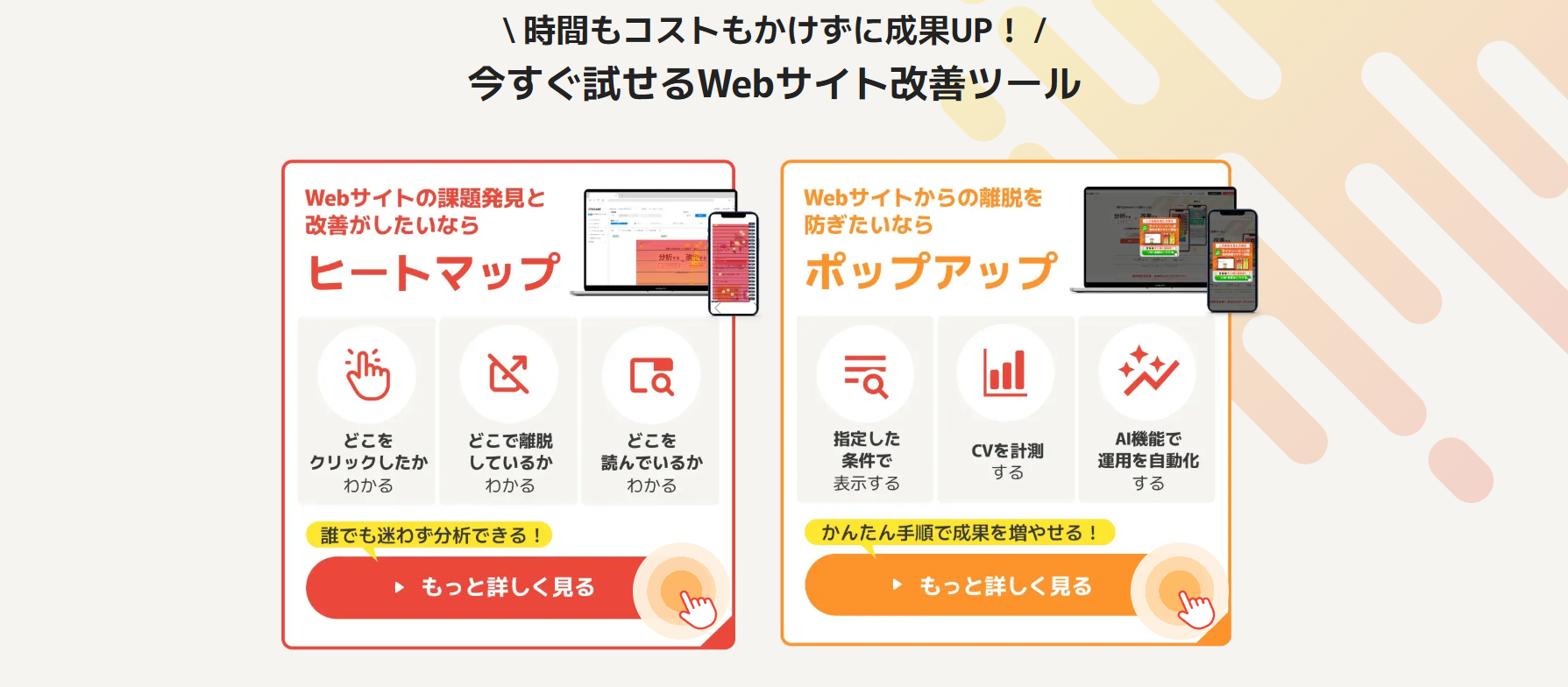 集客やコンバージョン改善につなげるための行動分析ツールです。