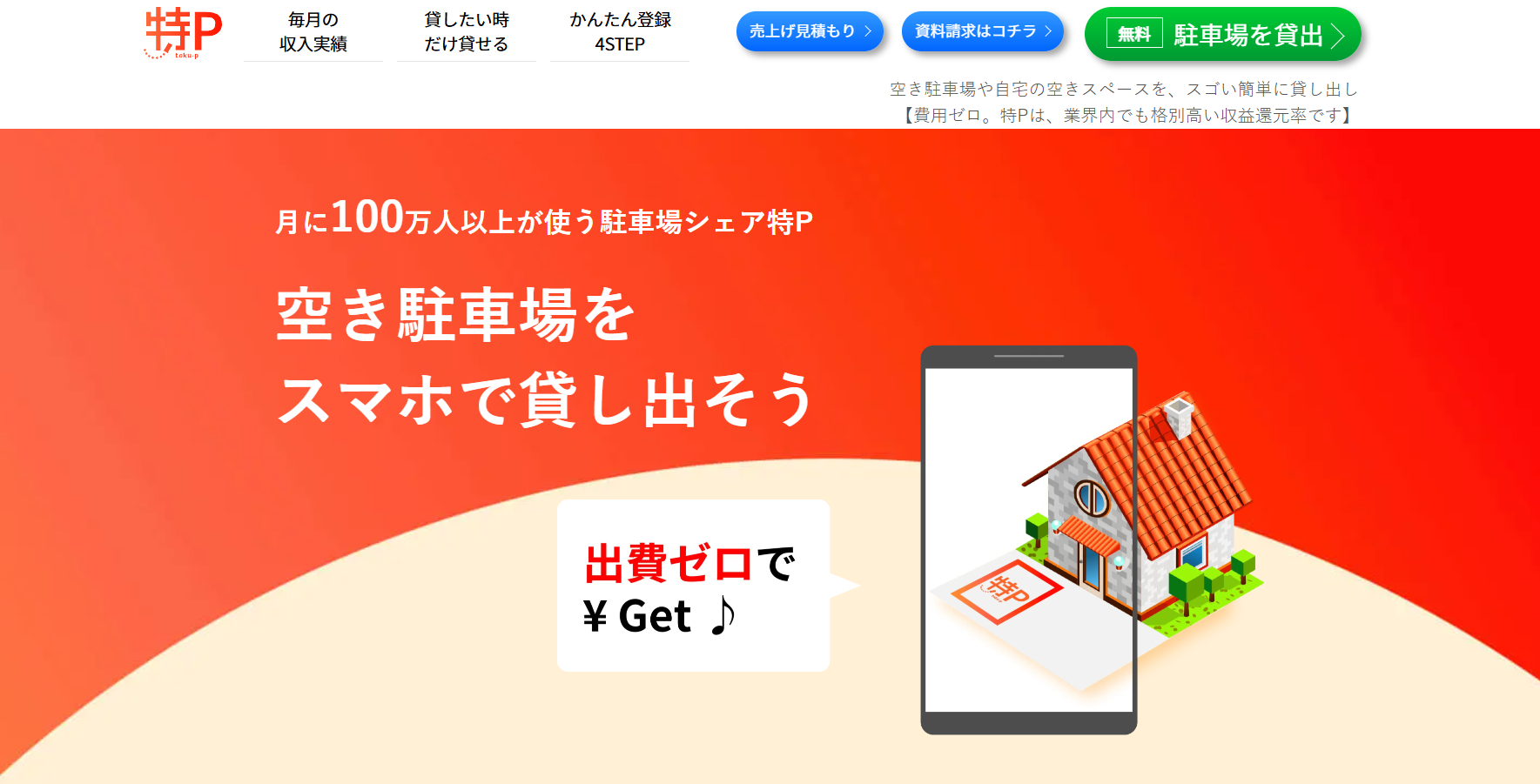 空き駐車場を収益化できる「特P」スマホで始めるかんたん駐車場シェア