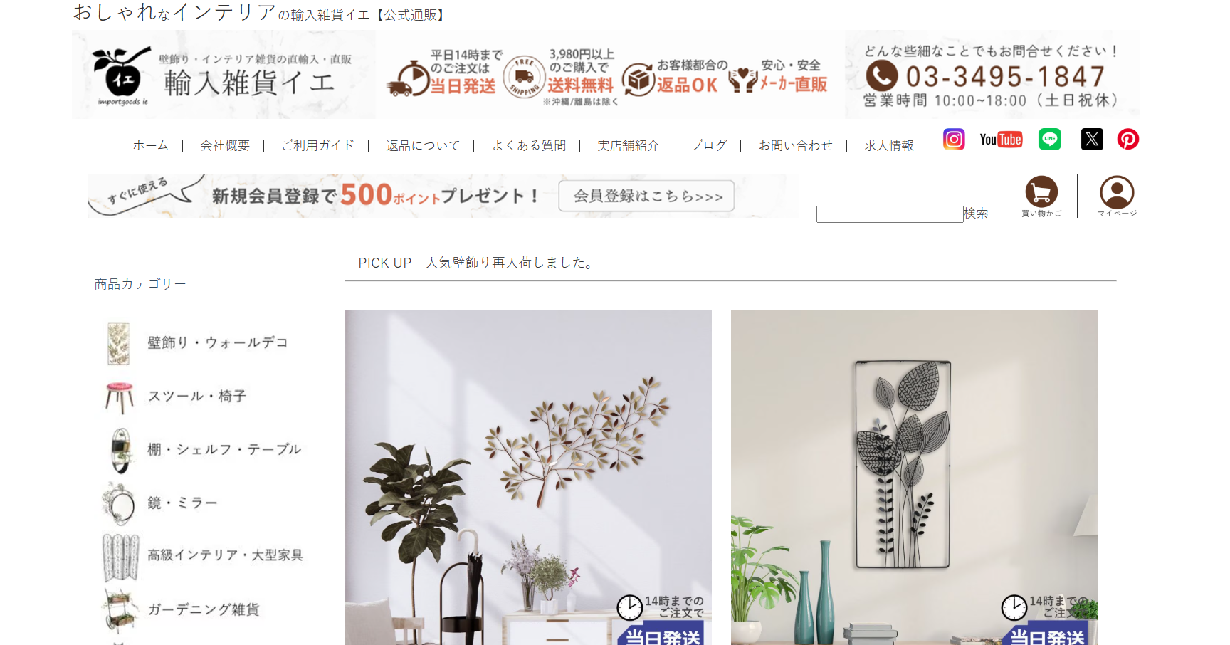 【輸入雑貨イエ】は、海外から直輸入されたインテリア雑貨やアイアン製品を取り扱う通販サイトです。個性的でデザイン性の高い商品が揃っており、自宅のインテリアをより魅力的に演出することができます。